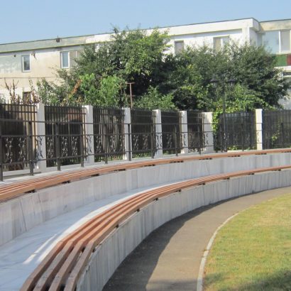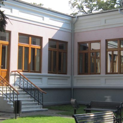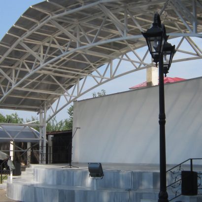 Proiectul a inclus consolidarea clădirii, finisaje interioare, instalarea de acoperișuri metalice și de lemn, și diverse instalații sanitare, electrice și termice. Amenajările exterioare au inclus o scenă metalică, o zonă placată cu marmură, parcare acoperită, fântână arteziană și amenajări peisagistice.